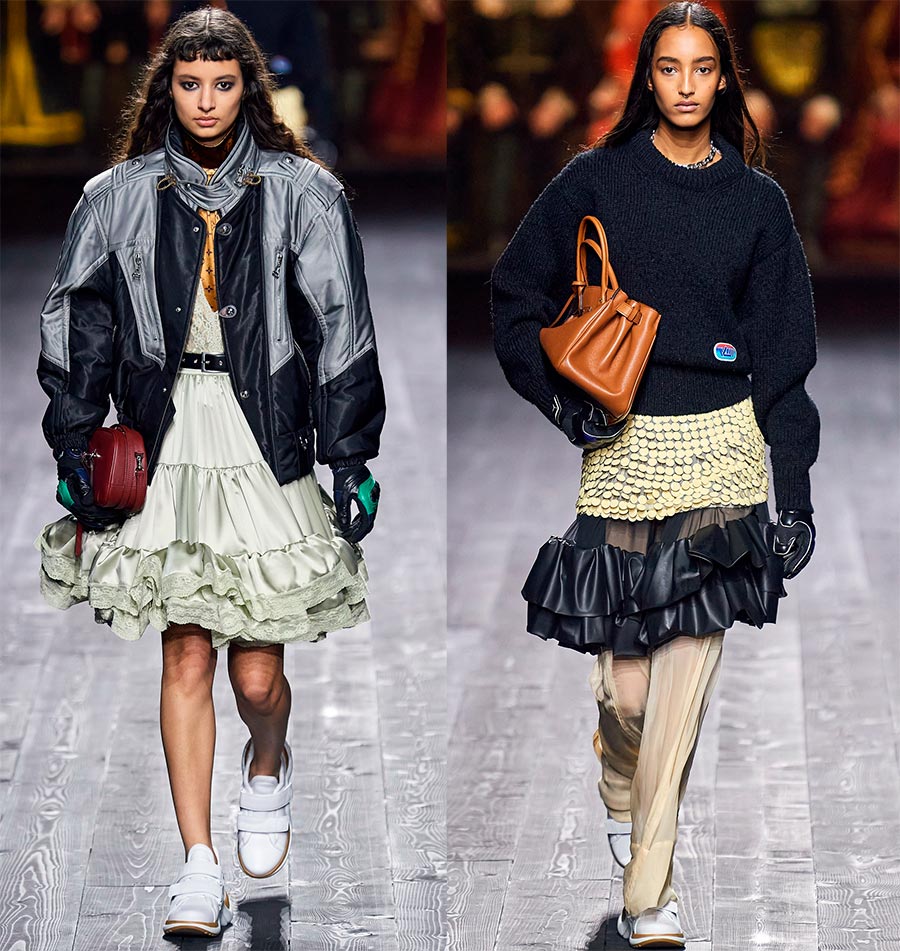 Beaucoup seront ravis que la nouvelle collection offre à la fois le luxe du passé et le design du futur, mais en même temps, presque toutes les images sont très modestes. La modestie signifie aucun élément séduisant. La fille Louis Vuitton ne veut pas être un objet de désir en matière de sexualité, elle attire l'attention avec d'autres vertus.