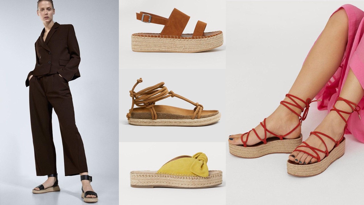 L'assortiment de magasins présente des sandales à semelles tissées de différentes hauteurs - des plates-formes fines aux très massives. Choisissez l'option qui vous convient.