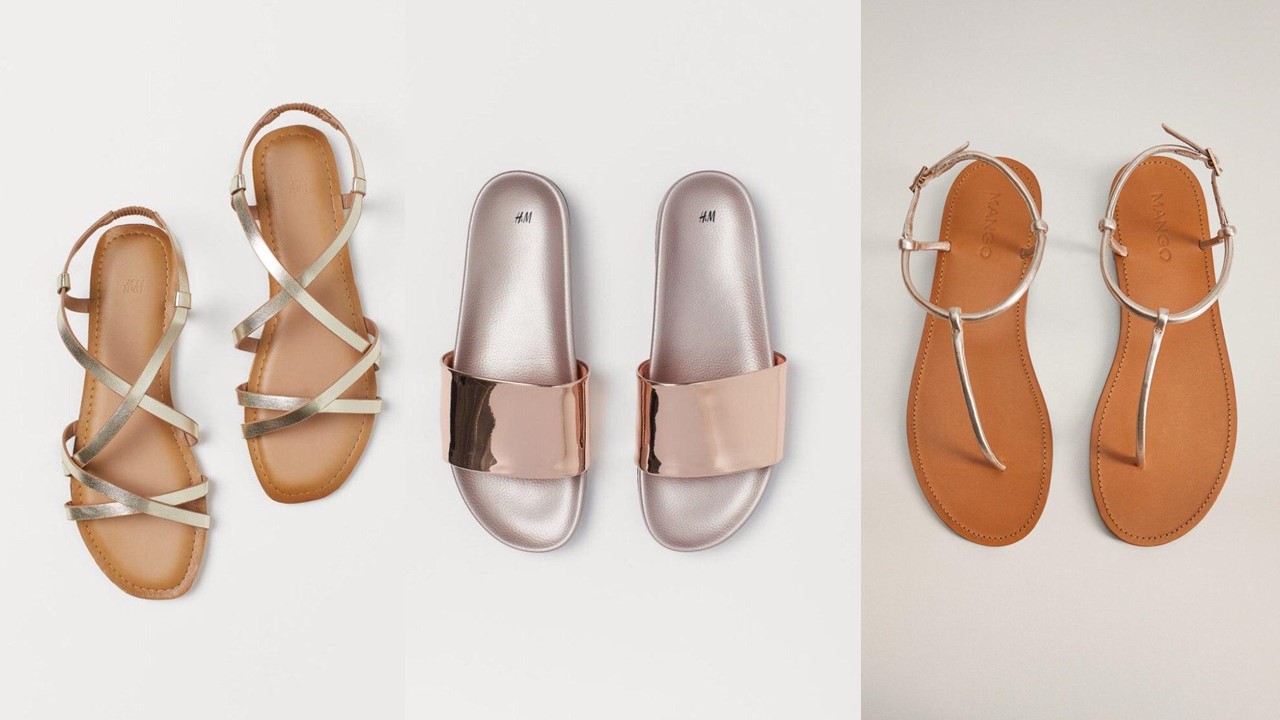Envie d'une paire de sandales lumineuses mais vous n'aimez pas la déco ? Choisissez une couleur inhabituelle ou un éclat métallique brillant. Les modèles de différentes nuances métalliques sont à la fois la base et la tendance de cet été. Ils vont bien avec tous les vêtements et mettent parfaitement en valeur le bronzage.