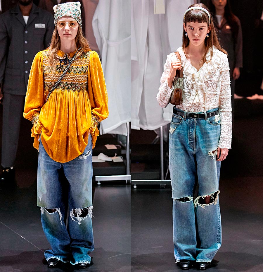 L'essentiel est que Gucci, sous la direction d'Alessandro Michele, ait atteint un nouveau niveau en termes de rentabilité et de popularité auprès des célébrités. Le designer est guidé par le principe - même si tout le monde n'aime pas mon travail, il ne laissera personne indifférent. De nombreux créateurs empruntent le style Gucci et l'incarnent dans leurs œuvres, bien qu'il s'agisse d'une mode différente. Si Gucci a une mode sophistiquée pour l'aristocratie, alors certains imitateurs ont une mode pour la classe ouvrière.