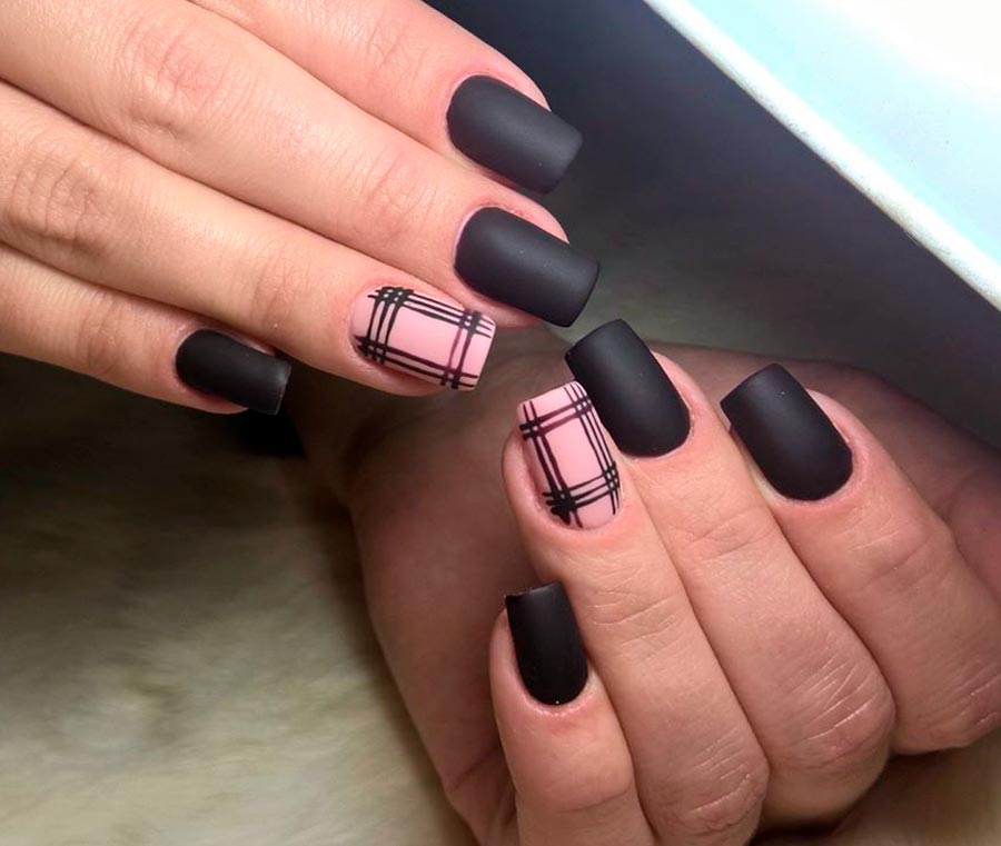 Nous avons également vu des manucures à carreaux sur les podiums de la mode cette saison. Dans ce cas, la cellule peut être la plus simple - comme dans un cahier dans une cellule. Ou vous pouvez faire les plus vrais tartans à carreaux dans le style d'un tartan ou d'un Burberry. Il sera plus difficile de les dessiner, mais si vous choisissez un beau dessin comme échantillon, il est tout à fait possible de le transférer sur la plaque à ongles.