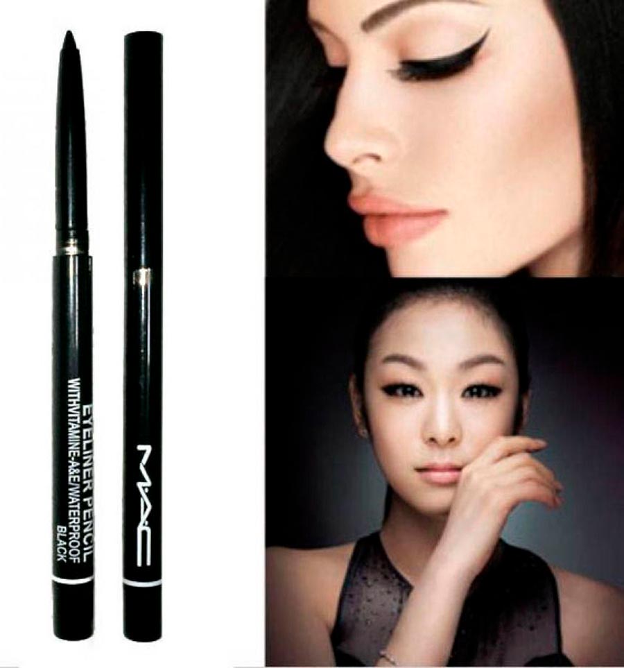Mais parfois, vous voulez vraiment dessiner une flèche bleu-noir claire ! Ici des crayons de Cosmétiques MAC et, curieusement, d'une marque spécialisée dans l'habillement - H&M... De bons crayons et toi Maybelline (Maître Drame), et les lignes les plus précises sont obtenues en utilisant leur propre eye-liner en gel Drame durable... La seule chose que vous devez obtenir un pinceau fin pour tracer une ligne fine et claire.