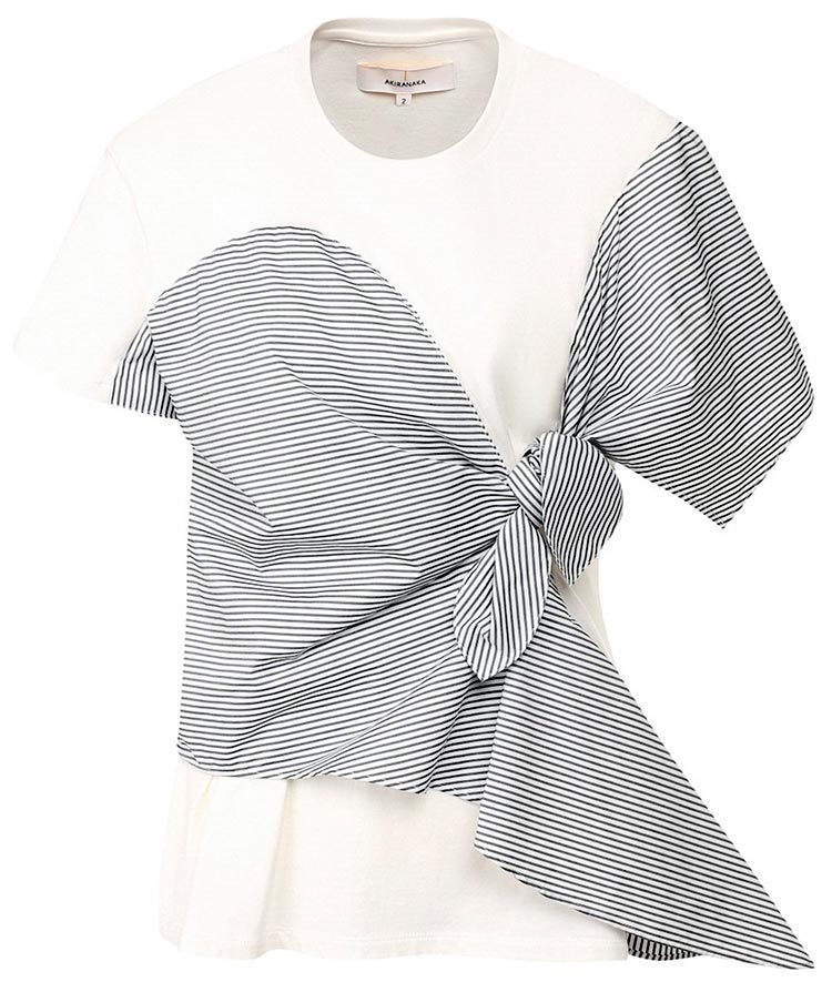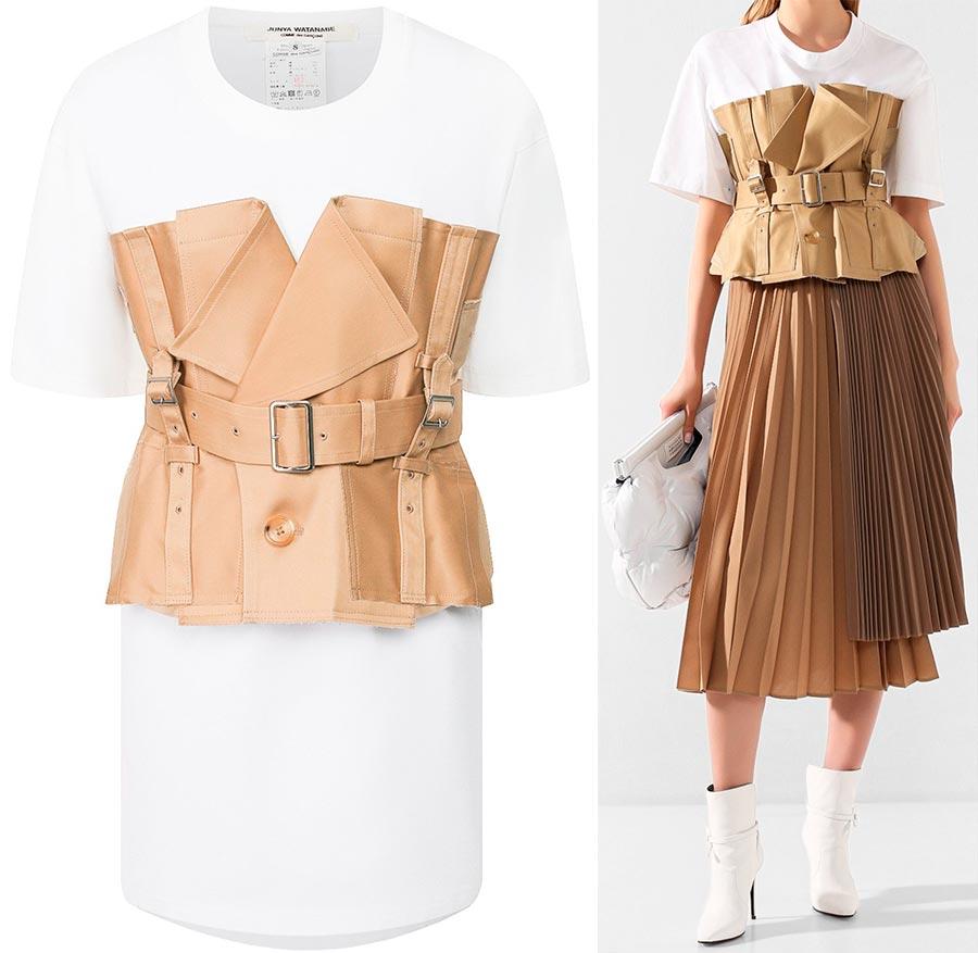7. Asymétrie et déconstructivisme. Avec l'aide de ces tendances, vous pouvez obtenir les images les plus originales et mémorables. Variations courantes d'asymétrie : une épaule, un ourlet asymétrique, une superposition complexe et une combinaison d'inserts de différents matériaux. Avec un peu d'habileté en couture et des idées créatives, vous pouvez acheter un t-shirt blanc uni et le personnaliser.
