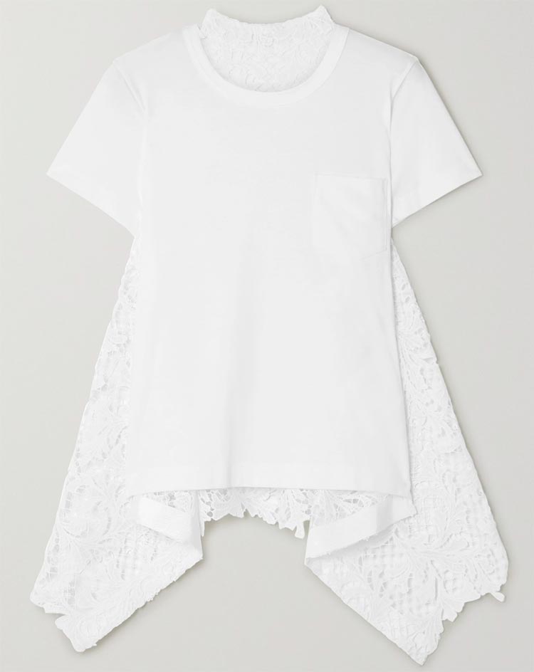 colliers en dentelle, les superpositions d'autres matériaux, les empiècements en dentelle et bien plus encore sont très importants dans la décoration des t-shirts. La combinaison de divers matériaux en une seule chose est une tendance importante de ces derniers temps. De tels modèles ont l'air originaux et se démarquent sur fond de choses simples.