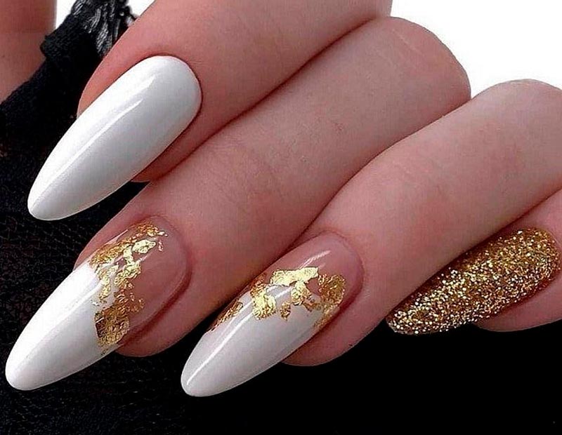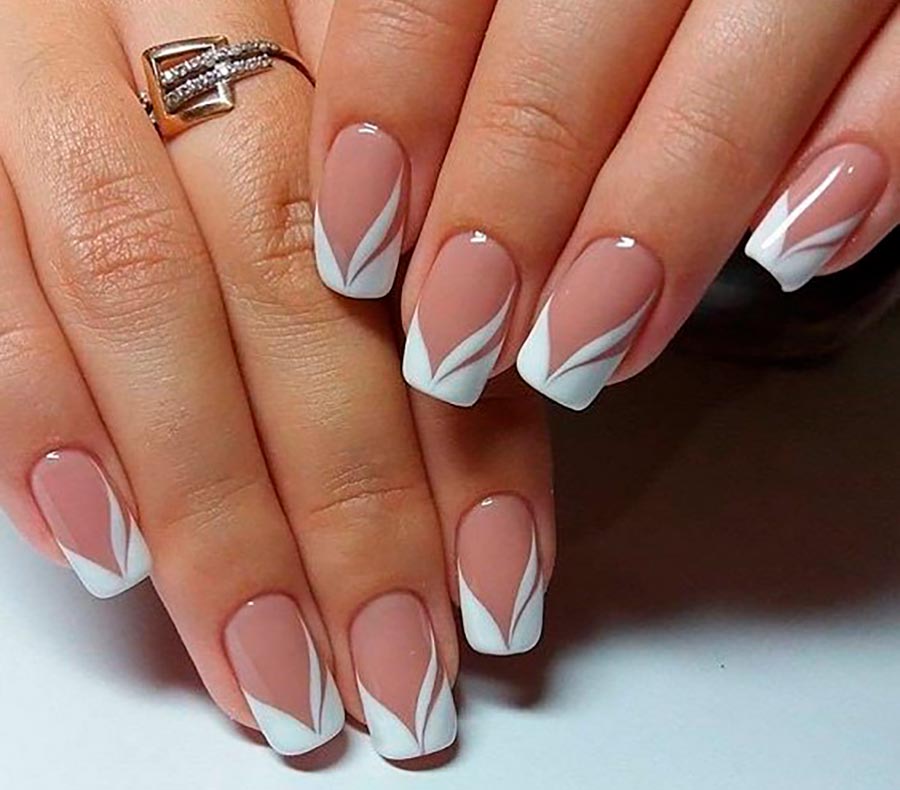 La manucure française blanche est devenue l'une des tendances les plus mémorables. Et ici, nous ne parlons pas d'un "sourire" blanc, mais aussi d'une base blanche. Pas tout à fait blanc, bien sûr, sinon le "sourire" ne sera pas visible. Mais ici, vous devez utiliser des nuances de lait ou de crème comme base, en choisissant des textures translucides. De tels ongles "blanchis" ont l'air très doux et soignés et sont parfaits pour une robe de mariée blanche.