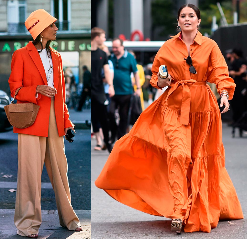 L'orange ambrée est une meilleure couleur pour les brunes à la peau foncée que pour les blondes à la peau claire. Il a fière allure à la fois en look monochrome et en combinaison avec du noir et blanc, du beige clair, du rouge et même du bleu.