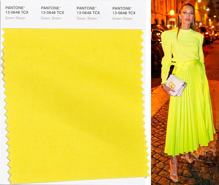 Certainement l'une des nuances les plus brillantes de la palette Pantone pour la saison automne 2026. Il est difficile de l'appeler complètement citron vert, c'est plutôt citron. Une couleur jaune vif, dans laquelle une nuance verdâtre est clairement tracée, ravira les froides journées d'automne avec son soleil et sa jutosité. Cela fonctionnera également bien pour les brunes, même pour créer un look monochrome. Mais il est préférable pour les blondes de combiner Green Sheen avec d'autres nuances.