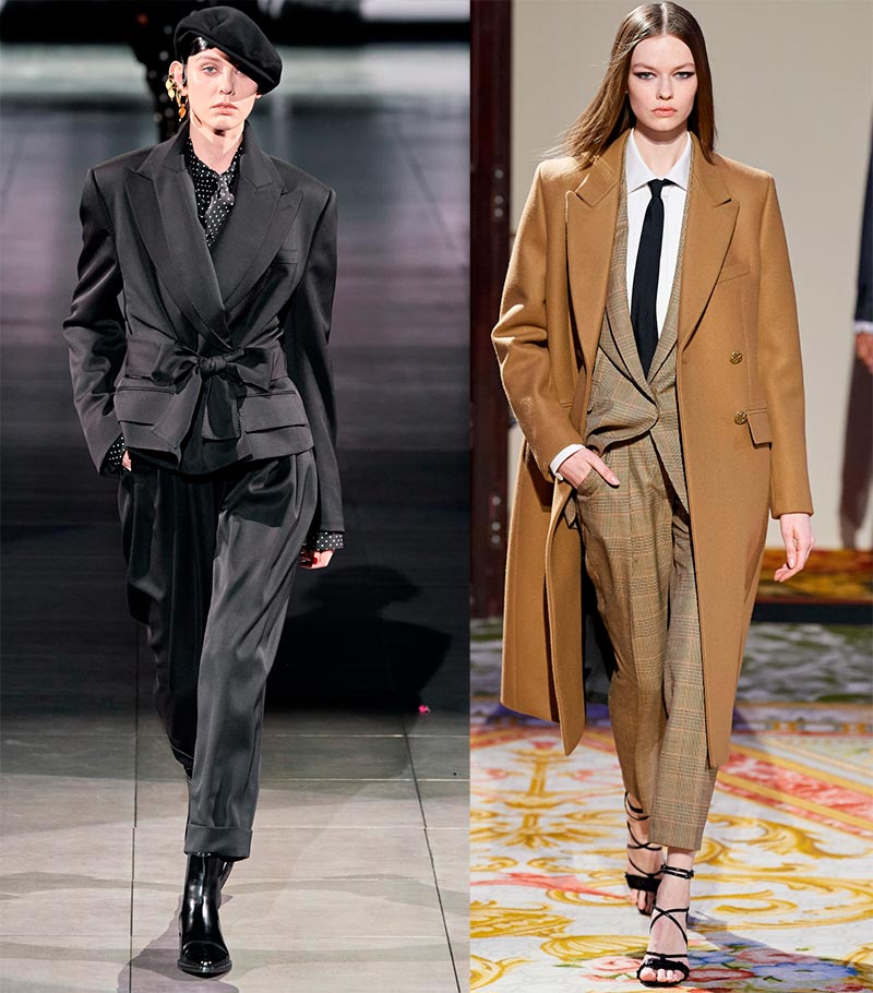 De nos jours, le style oversize est en vogue, ce que peu de gens conviennent.Dans la nouvelle saison, ce style est présenté plutôt modérément dans de nombreuses collections. Par exemple, dans la collection Eftychia, Gauchere, Akris, vous pouvez voir des costumes surdimensionnés, qui comprennent un pantalon large et long et une veste très spacieuse.