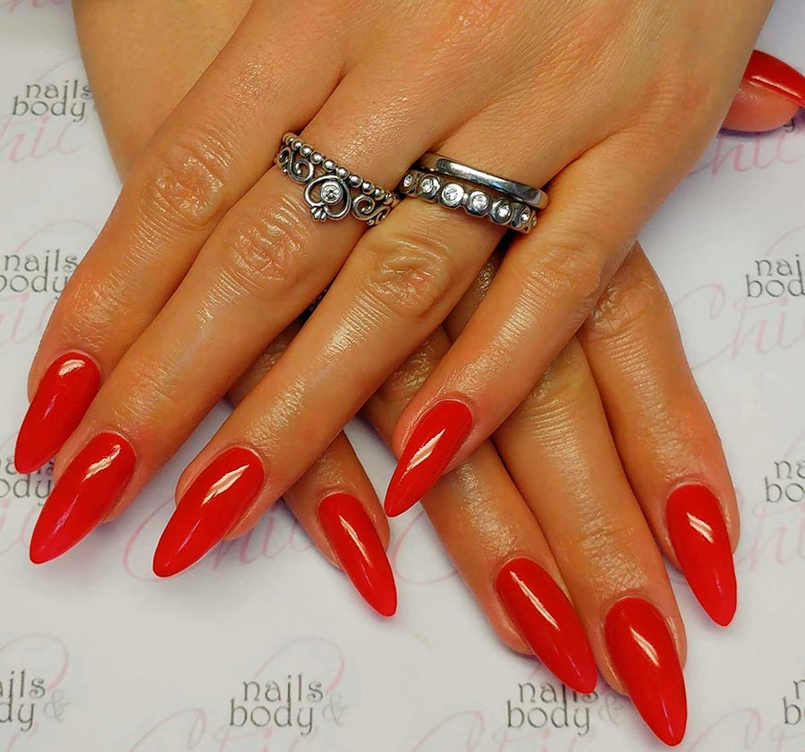 La principale exigence d'une finition rouge classique est une plaque à ongles parfaitement plate et une forme correcte. Après tout, si sous le design et le décor, il est possible de masquer des défauts ou des défauts de forme et des irrégularités, un revêtement monochromatique, au contraire, les trahira. Si nous parlons de vernis gel rouge, en règle générale, un revêtement bien pigmenté est assez épais et même "capricieux" dans son application. Par conséquent, vous devez être très prudent avec le rouge.