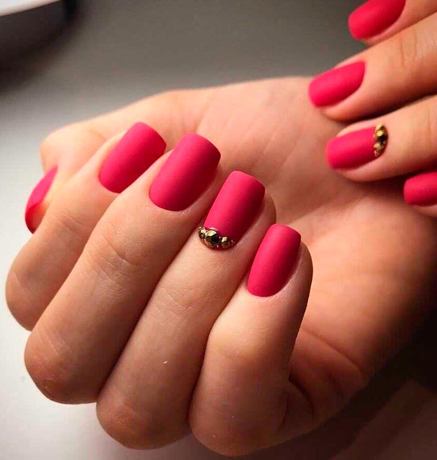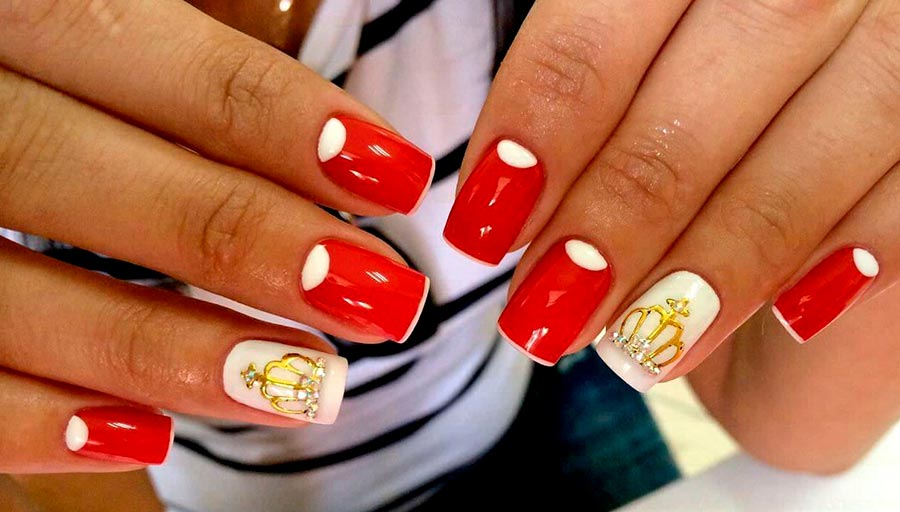 Cette option ajoutera sûrement de la solennité à l'image. Mais dans le cas des strass et des pierres, il est très important de ne pas en faire trop. Surtout si vos ongles sont longs : comme nous l'avons déjà écrit, les ongles rouges trop longs ne sont plus à la mode aujourd'hui. Pour les motifs en rouge et avec des strass, il vaut mieux privilégier la longueur moyenne et la forme en amande, et pour les plus courts, le carré sera le plus optimal.