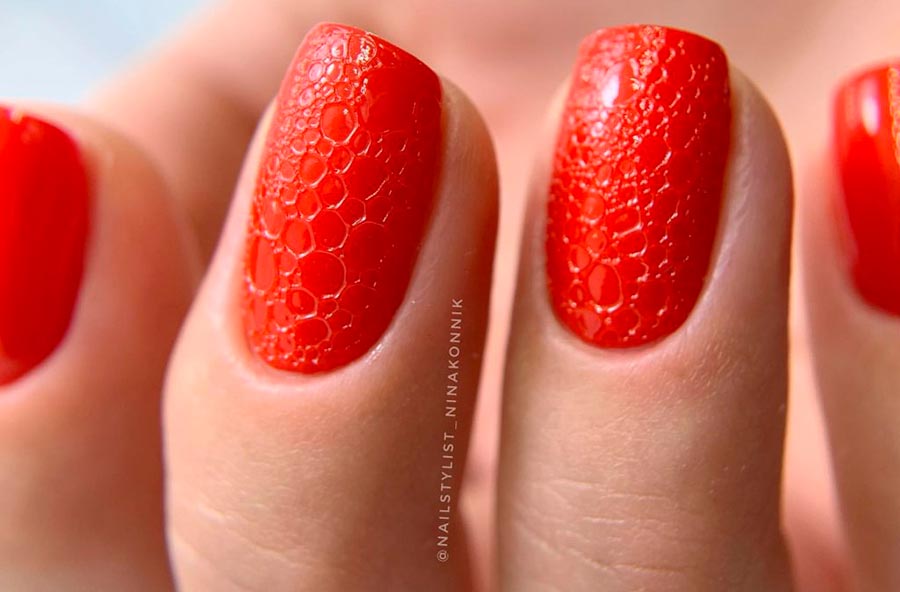 L'une des options de conception d'ongles les plus à la mode et les plus pertinentes aujourd'hui est une manucure en mousse ou des ongles à bulles, une mousse pétillante. La texture inhabituelle de la mousse ou des bulles de savon créées sur les ongles est particulièrement belle dans les tons rouges. Comment une telle manucure est-elle créée? Les artisans utilisent une mousse spéciale et le savon ordinaire convient parfaitement à une version maison d'une manucure en mousse.