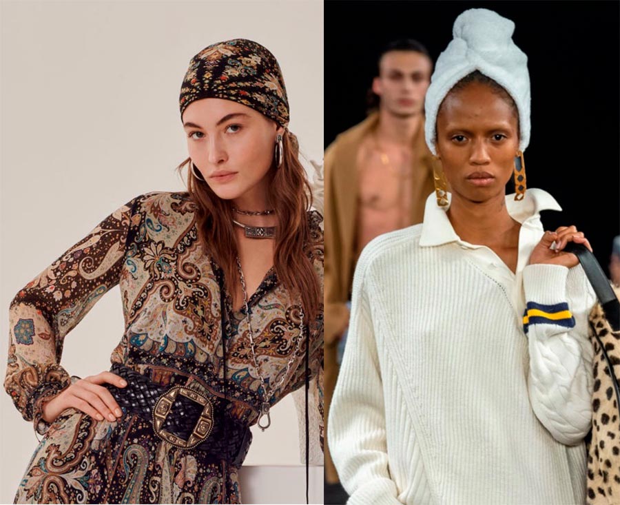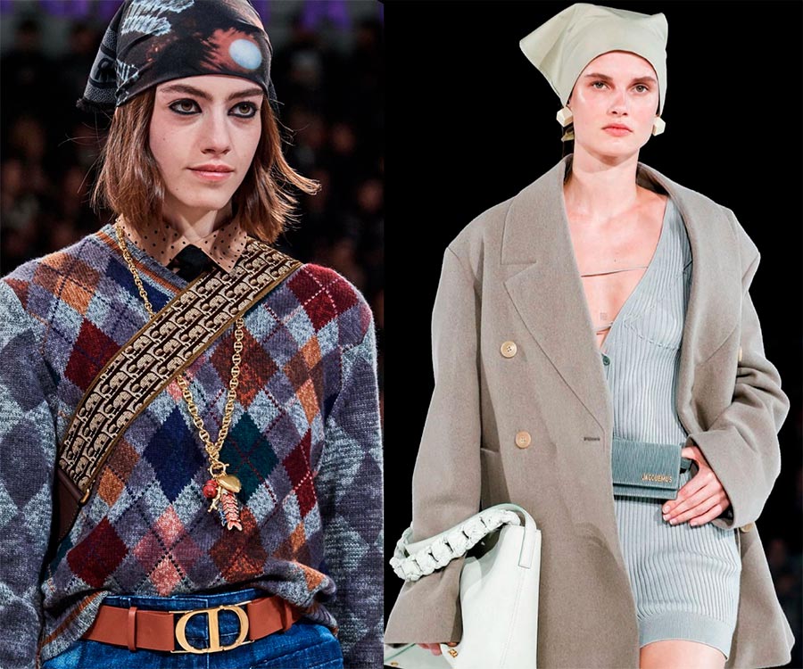 Parmi les chapeaux, les incontournables de cet été étaient les foulards des années 70 et 90. Les créateurs des maisons de couture Celine, Saint Laurent, Roland Mouret et Etro, inspirés des années 70-90, ont sorti des collections avec différentes variantes de nouage de foulard, ce qui a provoqué un grand boom parmi les fashionistas. Dans les collections automne-hiver des Fashion Weeks de Paris et de New York, Alexander Wang, Jacquemus, Marc Jacobs, Christian Dior, The Row proposent des foulards isolants dans leurs collections à partir de tissus denses, monochromes et en laine avec de nouvelles déclinaisons de foulards à nouer. Que cela devienne un Must have de cet automne dépend de vous, chères femmes de la mode.
