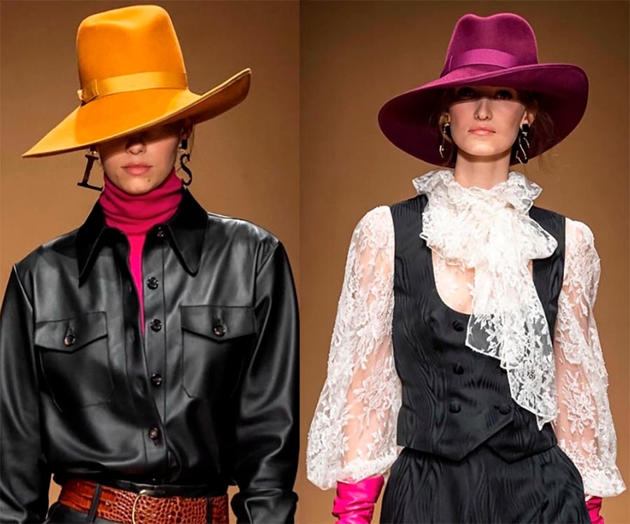2025-2026 Luisa Spagnoli propose des modèles lumineux de chapeaux Fedor vintage dans leurs collections automne-hiver.