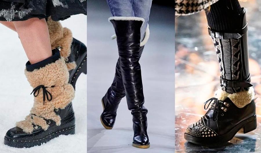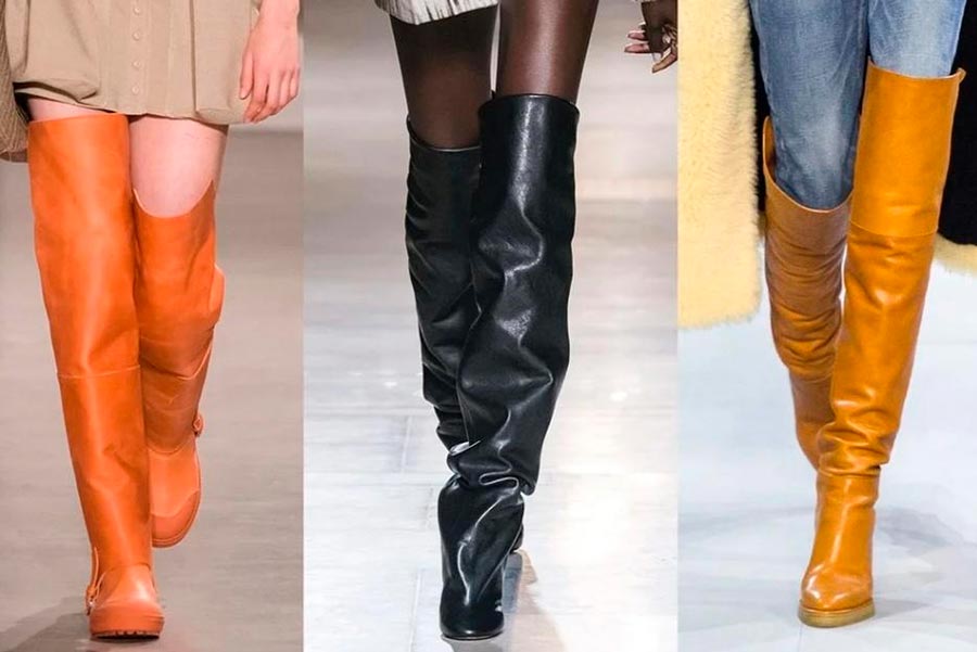 Pour la fin de l'automne, les créateurs proposent différentes options de bottes : bottes, bas, bottes pour cavaliers. De plus, à la fois en cuir verni et en daim ordinaire, sous un reptile et avec un décor en peau de mouton. J'ai déjà écrit sur la couleur.