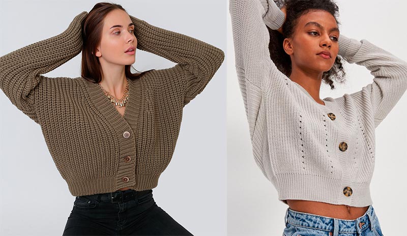 Pour celles qui aiment porter des pantalons et des jeans taille haute, les créateurs ont proposé des cardigans très courts et des pulls boutonnés. Ils peuvent même être rentrés dans des pantalons et des jupes, créant du volume et une silhouette intéressante. Les cardigans en maille fine fabriqués à partir de fils de coton doux sont suggérés pour être portés directement sur le corps nu. Si vous choisissez un fil de laine plus épais, n'oubliez pas de mettre un haut sous le bas.