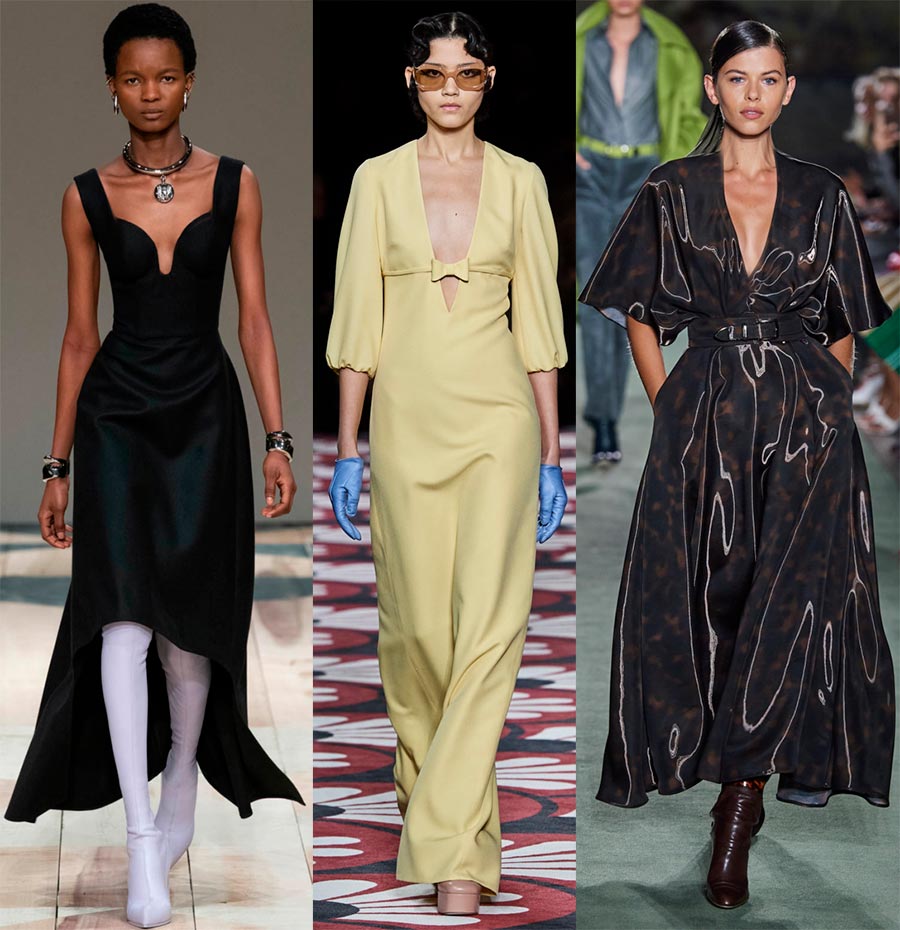 - Le décolleté plongeant continue d'être un favori des créateurs.