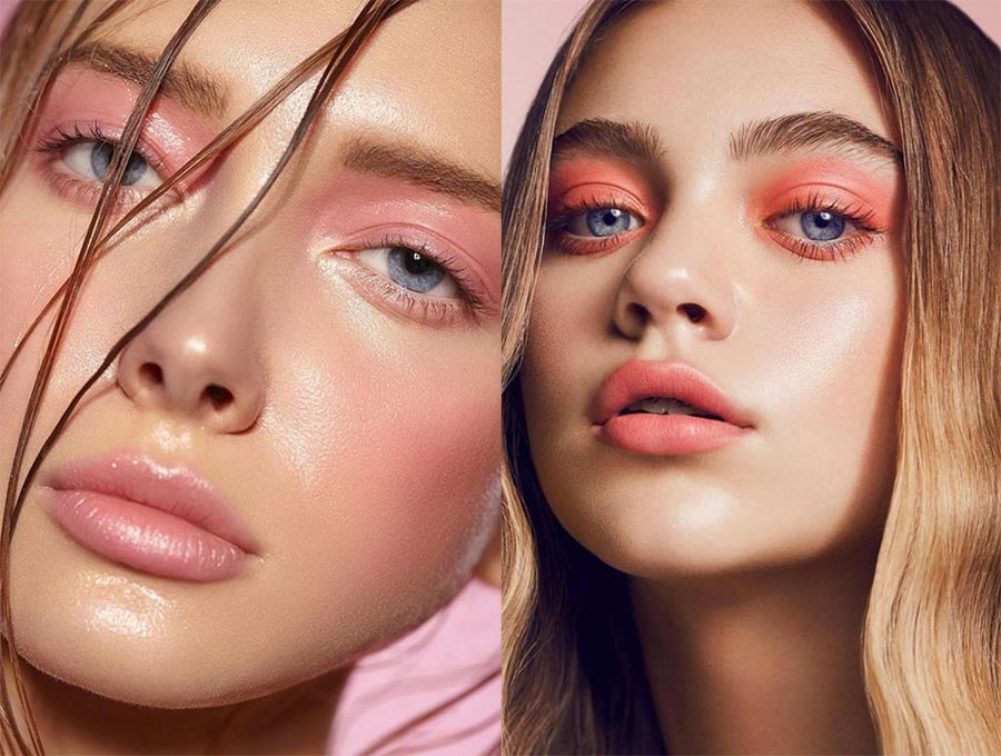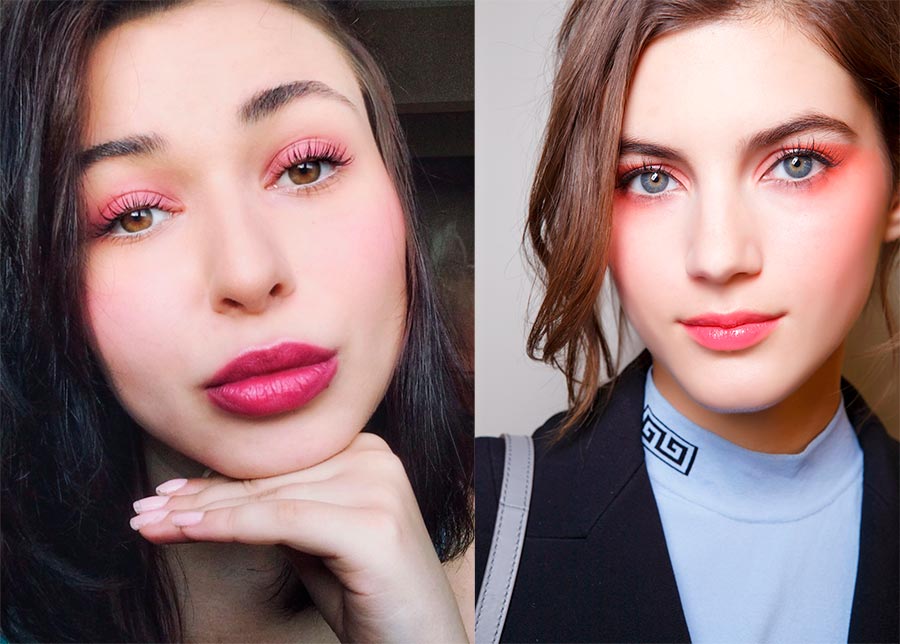 Une autre tendance très intéressante et inattendue que nous avons vue sur les podiums. Le maquillage monochrome est réalisé en une seule couleur. Lors des défilés de mode, les modèles étaient peints en rose, bleu, salade, jaune, qui étaient utilisés pour les yeux et les lèvres.