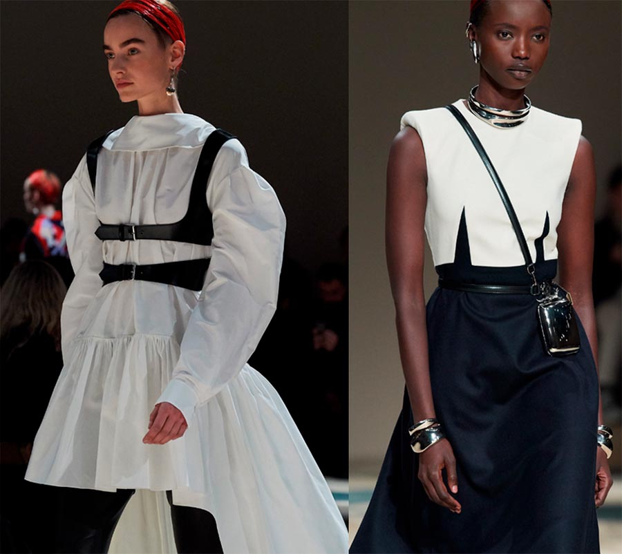 Le harnais est à nouveau sur le podium. S'il semble dangereux de le porter de la manière habituelle, essayez, comme Alexander McQueen, de jouer avec un sac miniature ordinaire. Attachez-y deux sangles, attachez-en une à la ceinture, jetez la seconde par-dessus votre épaule.