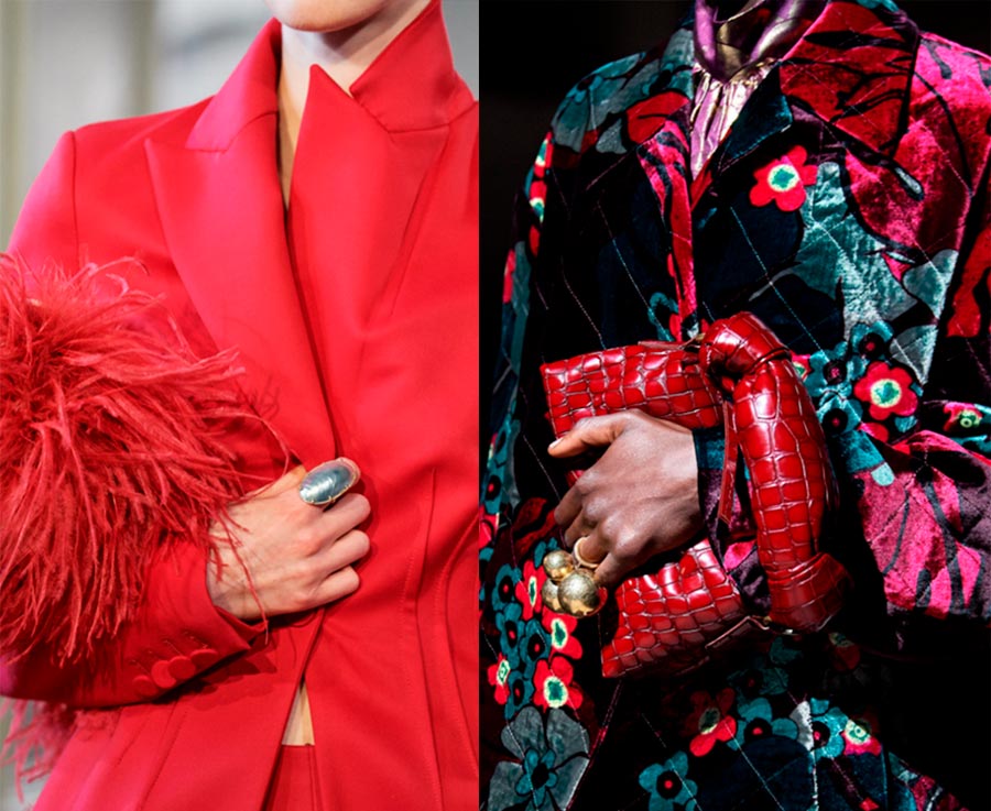 Les bijoux au doigt ne sont pas à la mode, très peu de créateurs montrent des chevalières et des bagues lors du style des images. Les grosses bagues d'Altuzarra et de Dries Van Noten font plutôt exception à la règle. Il y a beaucoup de gants dans les salons et c'est peut-être la raison de l'impopularité des autres bijoux "main".