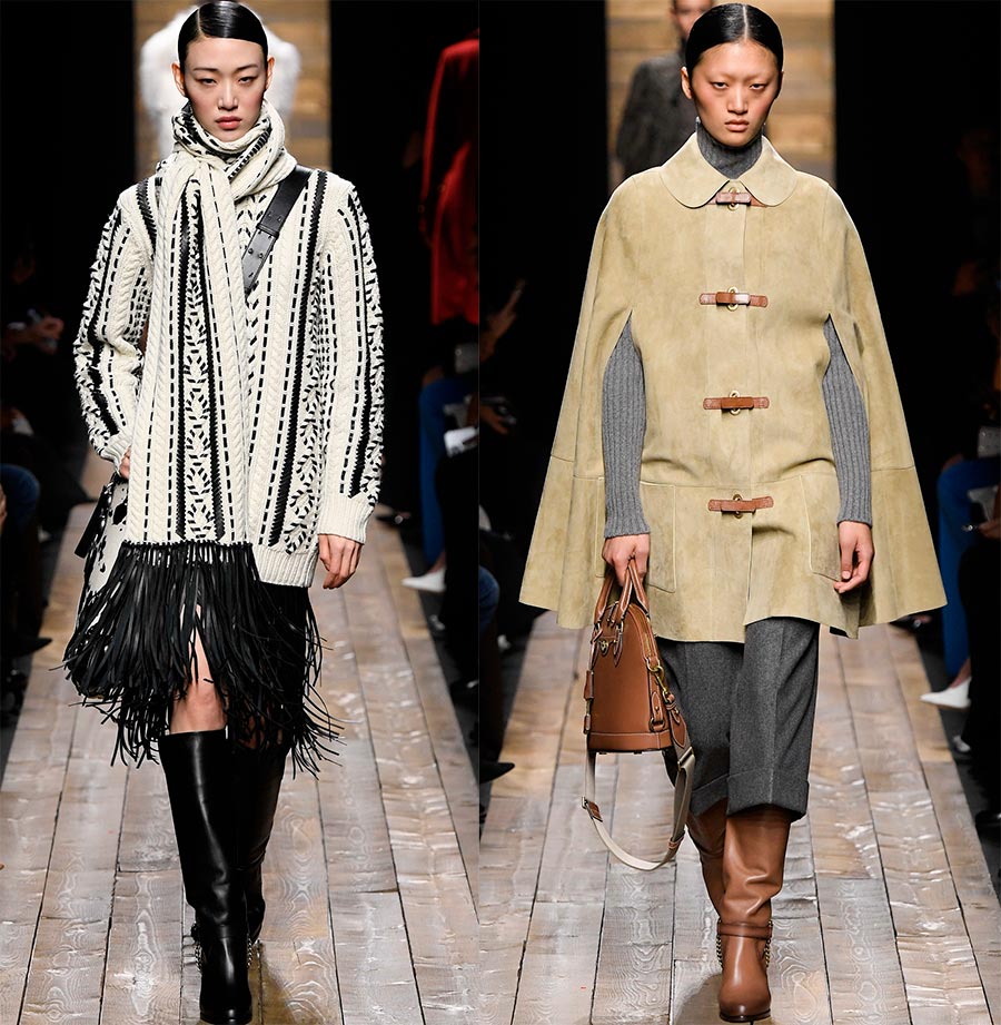 Nous pouvons continuer à énumérer les styles qui ont inspiré les designers, mais jetons maintenant un coup d'œil à la nouvelle collection Michael Kors. Le designer y a combiné avec succès le confort, la sensation de chaleur et de convivialité d'une maison de campagne avec l'élégance et le luxe dans un environnement urbain.