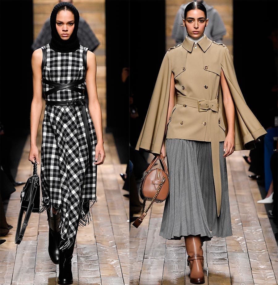 "Nous ne pourrons peut-être pas déménager à la campagne, mais nous pouvons nous souvenir du sentiment de confort et le remplir du faste et du luxe dont nous avons besoin dans un environnement urbain" - pense donc Michael Kors. Oui, la collection allie confort rustique et raffinement urbain. Il existe une variété de capes et de pulls bien tricotés, de manteaux chauds en peau de mouton et de jupes décontractées, de robes de soirée plissées et de bottes hautes, d'imprimés de vache, de cachemire et de plaid, de costumes surdimensionnés et ajustés, de vestes longues et de grands sacs, ... Il y en a beaucoup options décontractées parmi les modèles, ils sont tous extraordinairement féminins.