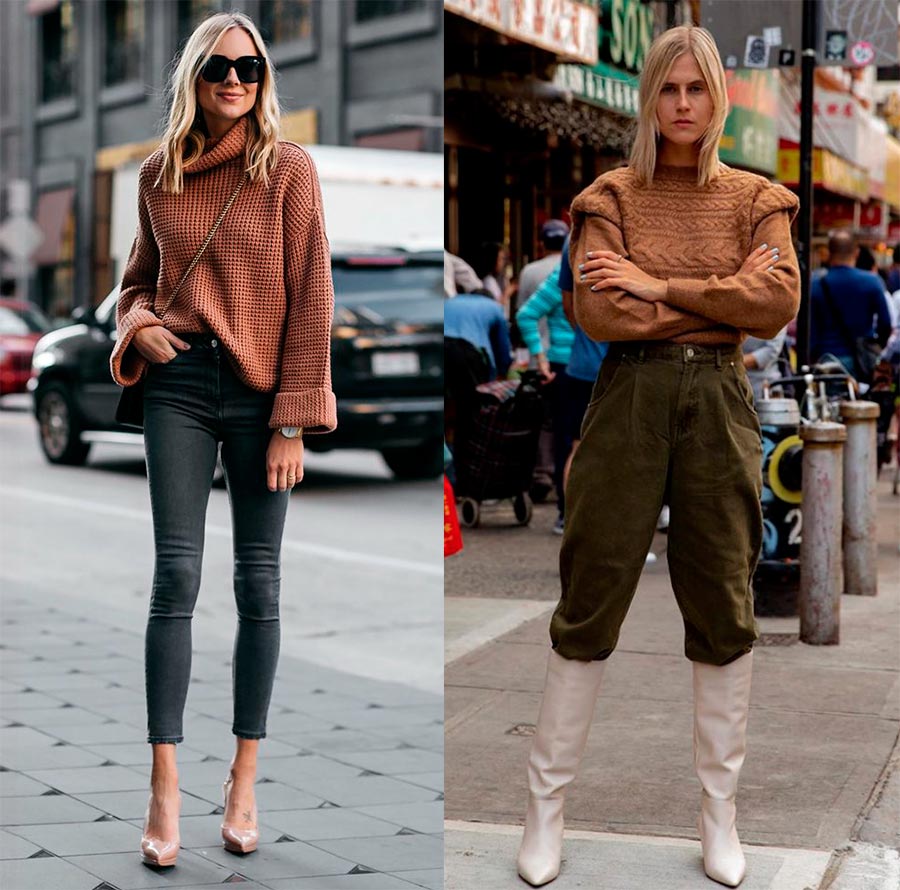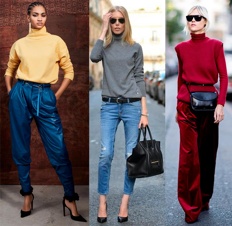 Modèles ajustés, cols roulés et mi-bas en maille fine s'intégrera parfaitement dans un look professionnel exquis et sophistiqué pour être aussi féminin que possible. D'en haut, vous pouvez enfiler une veste ou un trench-coat, combiner avec une jupe ou un pantalon strict, avec des escarpins et des bottes. Ce sont ces options sobres aux couleurs basiques que nous avons vues sur les podiums des défilés de Victoria Beckham, David Koma, Giorgio Armani, Alberta Ferretti, Salvatore Ferragamo, Paco Rabanne et bien d'autres.