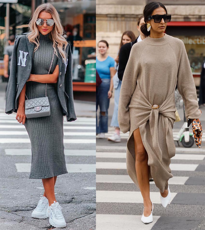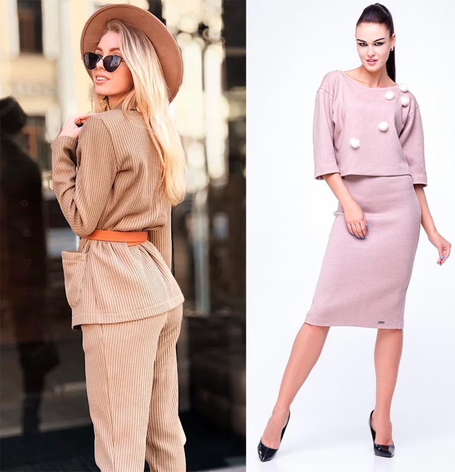 Les robes en tricot et les costumes avec jupes seront un autre succès de la saison. Ils peuvent être réalisés en jersey fin à base de coton, et c'est parfait pour le tout début de l'automne et même pour un été frais. Ou peut-être s'agit-il d'un gros tricot gaufré fait d'un fil à base de laine, qui vous réchauffera parfaitement par temps froid. Si vous envisagez de porter une robe en laine, il est préférable de porter un haut ou une combinaison fine sous le bas pour que la laine ne "mord" pas.