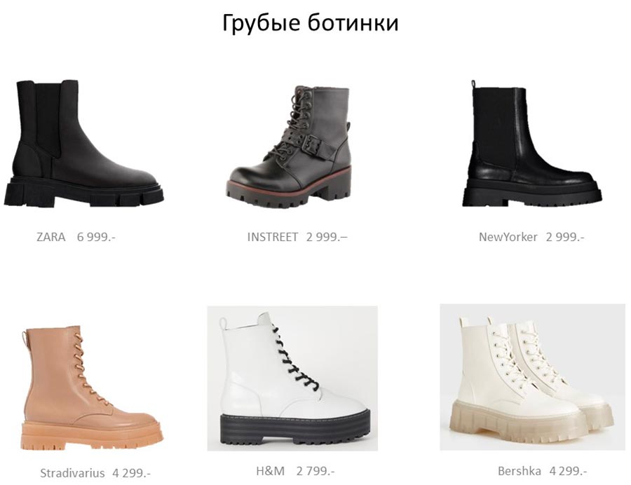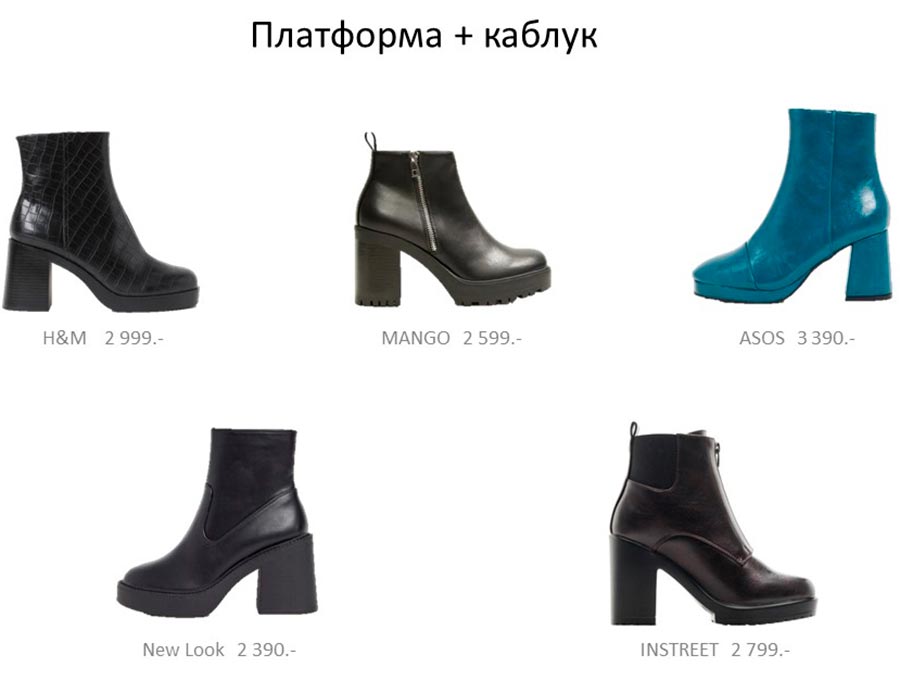 Le talon est large, stable, mais ils peuvent avoir n'importe quel nez - à la fois arrondi et plus rectangulaire. Soit dit en passant, les chaussures du passé sont la micro tendance actuelle. Par conséquent, si vous avez des baskets des années 90, il est temps de vous les procurer. Ils sont également au sommet de la popularité!