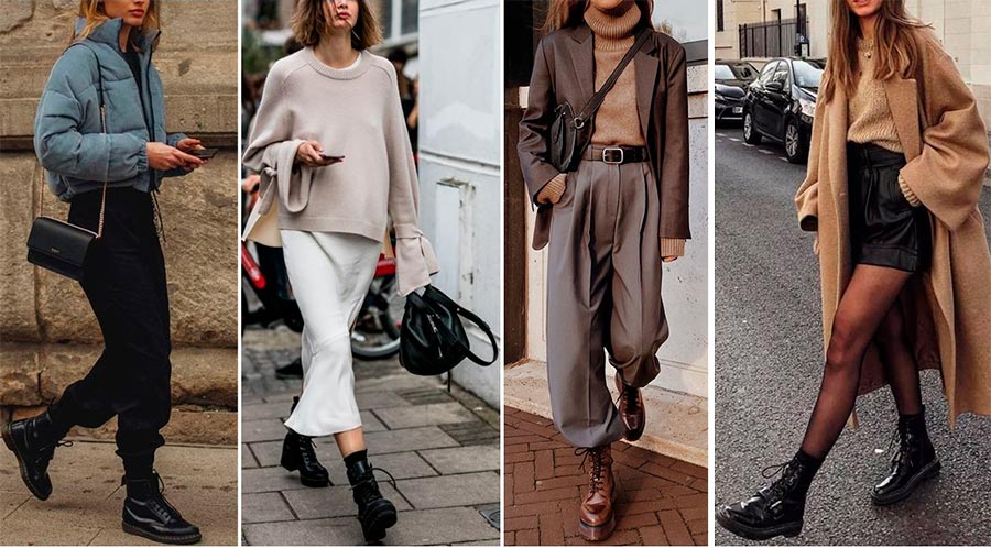 La largeur de l'arbre peut être quelconque. Maintenant, la tendance est au bootleg large, et peu importe qu'il s'agisse de bottes ou de bottes, mais les silhouettes adjacentes avec laçage ne deviennent pas obsolètes. Par conséquent, vous pouvez en prendre n'importe lequel, même en caoutchouc mat, et avoir l'air élégant.Oui, et les chaussures en caoutchouc, c'est une autre micro-tendance de la saison, qui sera très utile en cas d'automne pluvieux.