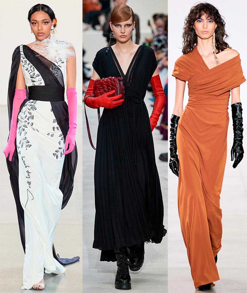 Dans la nouvelle saison, les concepteurs ont prêté attention aux gants longs - jusqu'au coude et au-dessus. Ils décorent le look, complétant les vêtements d'extérieur et les tenues de soirée. La plupart des produits proposés sont en cuir épais. A quoi ça ressemble dans la version du soir ? On peut dire - super !