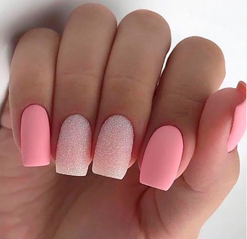 Manucure pailletée rose