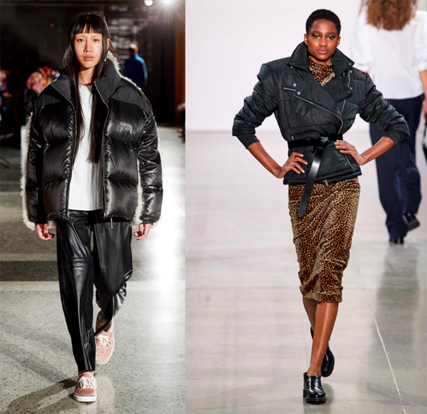 Sandy Liang montre une grosse doudoune noire, tandis que Nicole Miller montre une veste de motard ajustée.