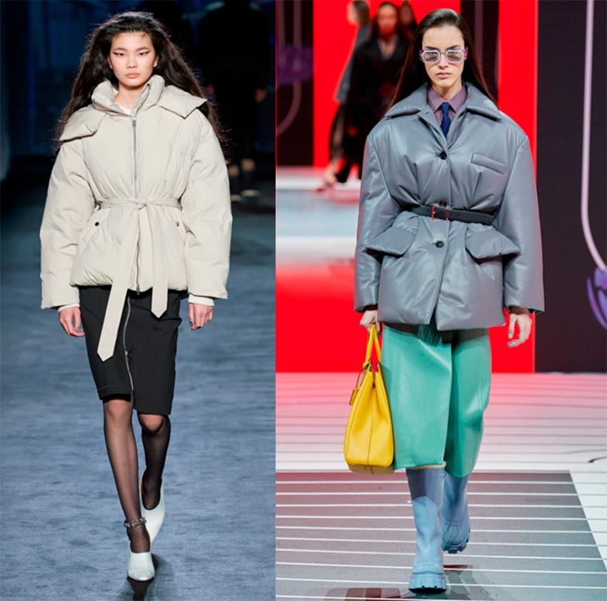 Si vous avez une doudoune dont vous en avez marre, soulignez simplement la taille avec une ceinture, comme l'ont fait les stylistes des marques Rag & Bone et Prada.
