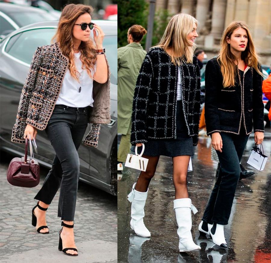 Le tweed, la laine, semi-ajusté avec une coupe sur les épaules de n'importe quelle collection Chanel, lorsqu'il est combiné avec des choses modernes, sera pertinent. Les Bar Jackets de Christian Dior sont un classique. De plus, les vestes parfaites sont des marques The Row, Max Mara, Celine.