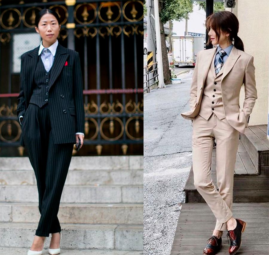 Peut être porté comme un diable. Faites attention aux costumes de la marque Max Mara. Saint Laurent est connu pour ses smokings qui épousent la silhouette d'une femme.