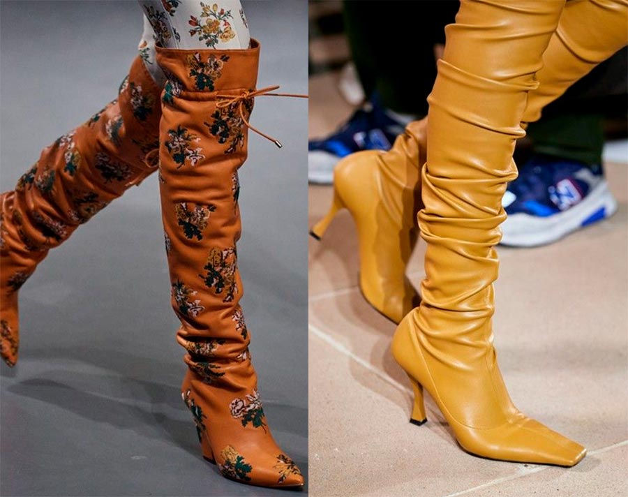 Des bottes plus douces et plus amples dans des couleurs intéressantes sont pertinentes. La condition principale est que les bottes soient hautes sous la jupe ou la robe, et ne coupent pas la jambe.