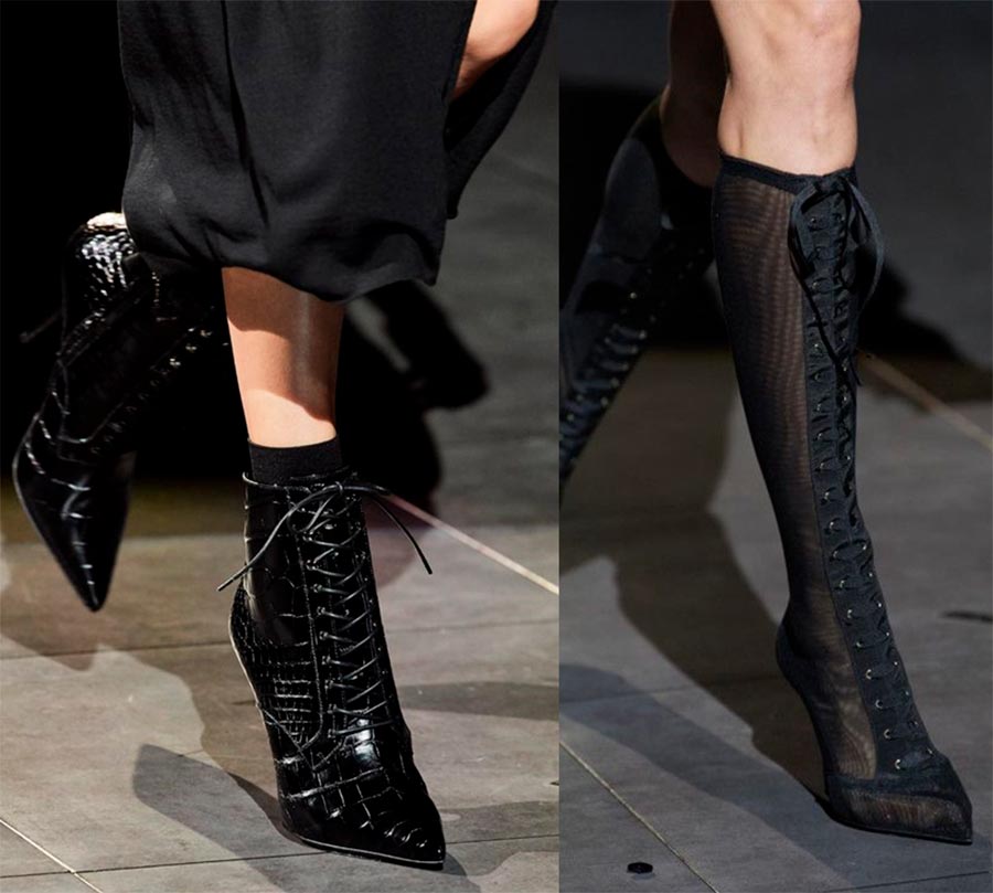 Les bonnes bottines dans les collections Loewe, Alexander McQueen, Saint Laurent.