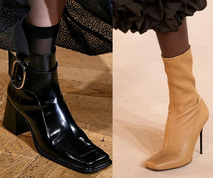 Boots Trompette dans les collections des marques Paris Texas, Saint Laurent, The Row.