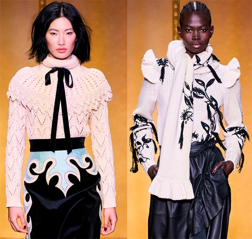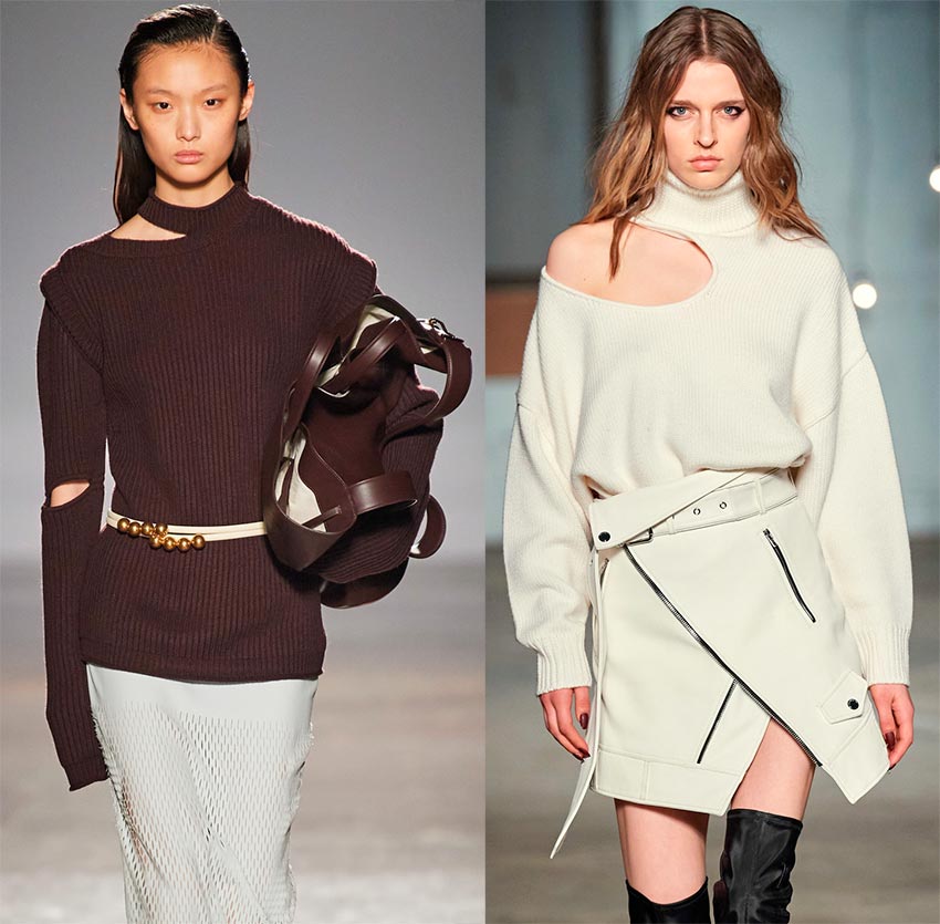 Le tricot élégant fait preuve de déconstructivisme, d'actualité en cette nouvelle saison, qui s'incarne également dans les pulls.
