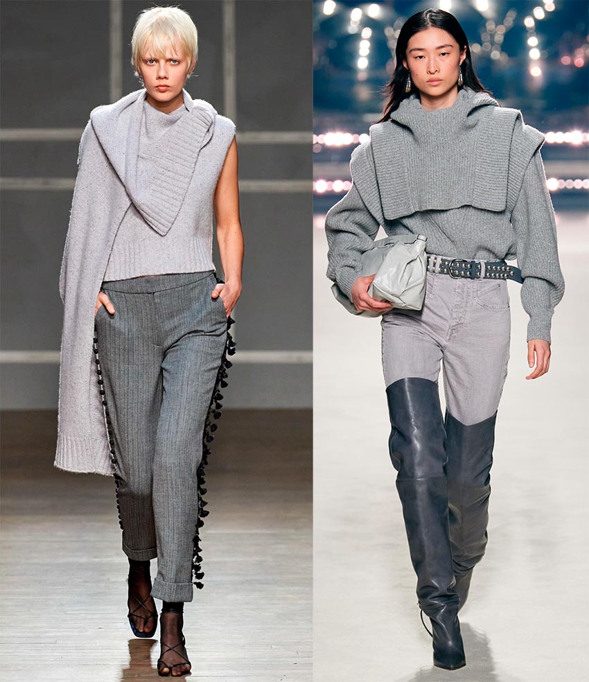 APC, Emporio Armani, Dolce GabbanaLes ensembles créés à partir d'une combinaison de tricots de différentes textures peuvent également devenir une idée originale.