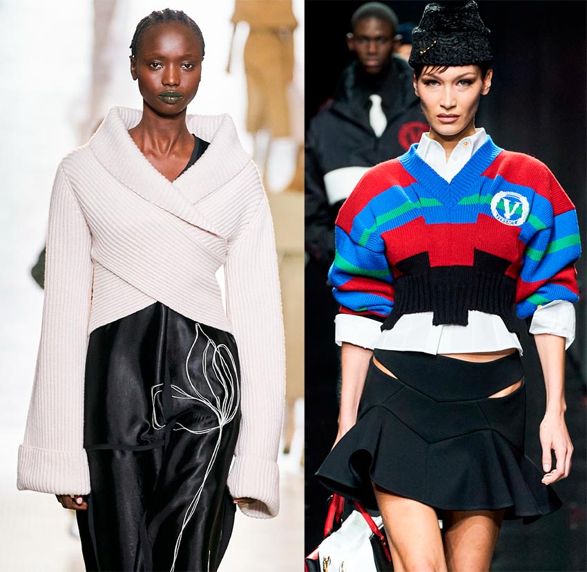 En plus des pulls volumineux, les créateurs proposent également de petits modèles raccourcis, qui sont considérés sous la forme