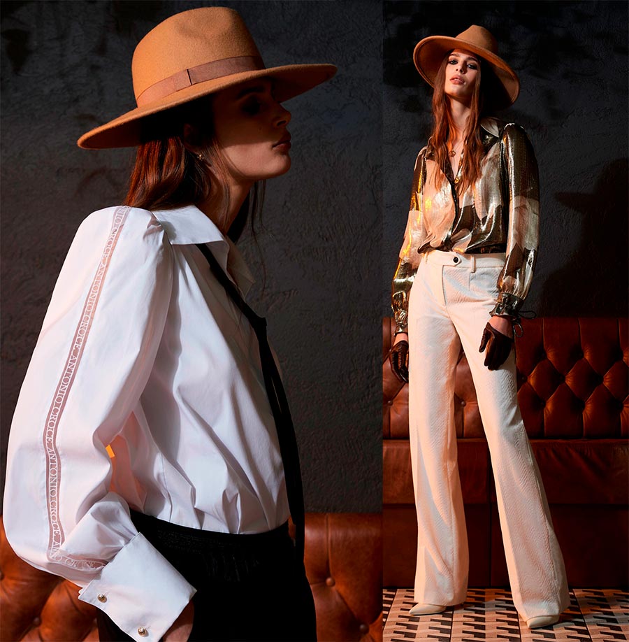 Elisabetta Franchi, Laura-Garcia, Nicole MillerComme vous pouvez le voir, ces blouses ont déjà des éléments de style masculin, même si elles sont diluées avec la tendresse des tissus aériens, des cols brodés, des nœuds et des volants. Actuellement, les chemises pour hommes modernes continuent de faire partie intégrante de la garde-robe des femmes.