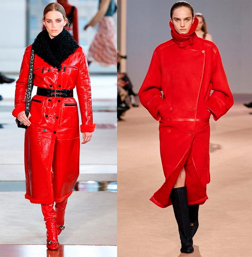 Chloé et Marc Jacobs ne montrent pas de manteaux classiques en peau de mouton, mais du cuir mat et brillant avec un col en fourrure. Si vous achetez un manteau ajusté en peau de mouton, alors acheter une paire de ceintures, avec eux, vous pouvez créer des images intéressantes.
