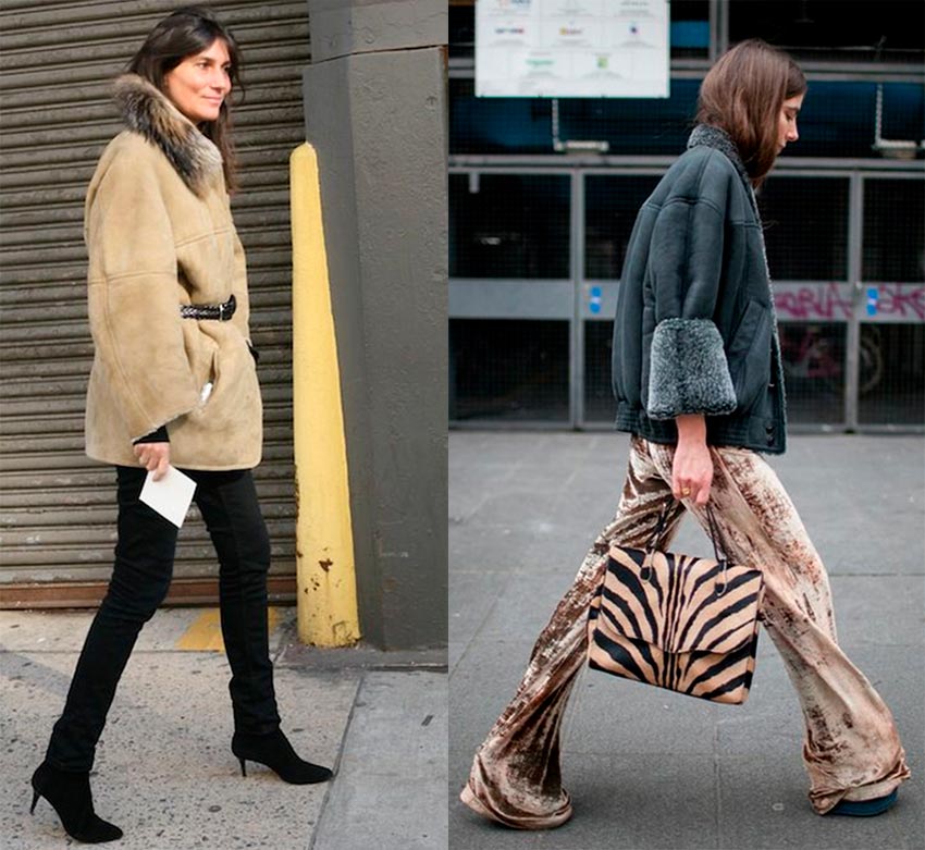 Le style bohème et le manteau en peau de mouton sont faits l'un pour l'autre, car le manteau en peau de mouton se marie bien avec des robes, des bottes ou des bottes féminines. Dans le même temps, la longueur du produit n'a pas d'importance; dans le style bohème, les manteaux courts en peau de mouton sont également harmonieux. S'inspirant des défilés Chloé et Michael Kors.