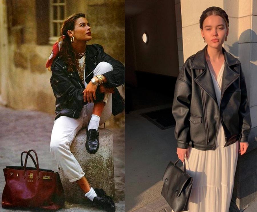Accessoires modernes. Utilisez des accessoires modernes dans un arc avec un article rétro. Par exemple, disons que vous avez pris une veste en cuir usée, que vous avez mis une grosse chaîne moderne et que vous avez pris un sac fourre-tout.