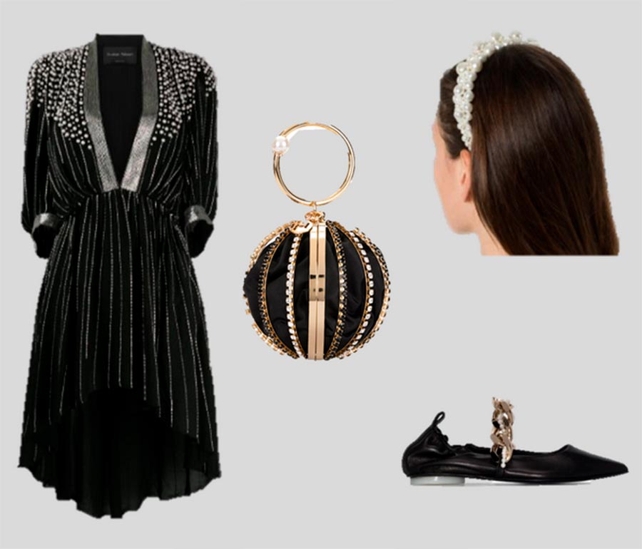 Si vous êtes enceinte, il est important de choisir une robe confortable, un sac à balles soulignera la position. Le bandeau ajoutera de la féminité à l'image et les ballerines sont des chaussures confortables pour une fille enceinte.
