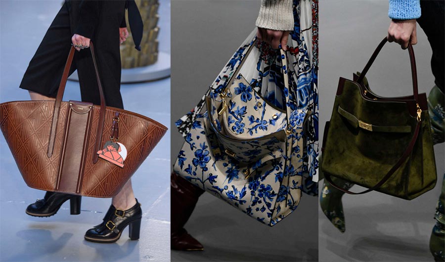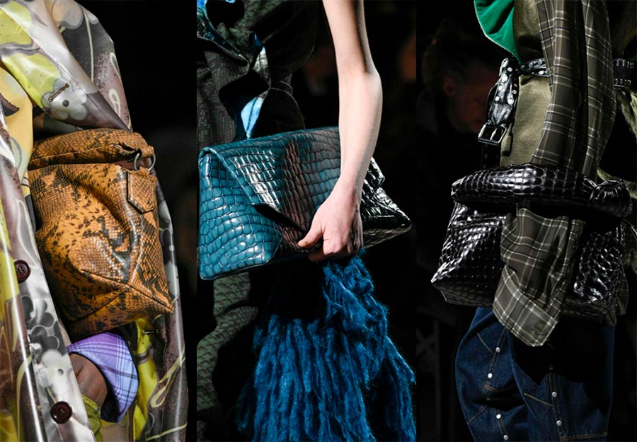 Des sacs énormes, le meilleur de la marque Givenchy. Une solution intéressante est une couverture en forme d'écharpe sur un sac. Les marques proposent de transporter d'énormes sacs avec des chaussures rugueuses. Les mieux notés par Stella Mccartney, Valentino. Segment milieu de gamme : Peter Do, Kassl Editions, Aesther Ekme.