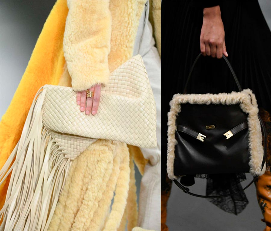 Bottega Veneta est la principale marque qui a introduit les sacs à franges sur la piste. Leurs sacs deviennent les sacs informatiques de la saison. La marque originale et authentique 0711 fabrique également des sacs à main à franges intéressants.