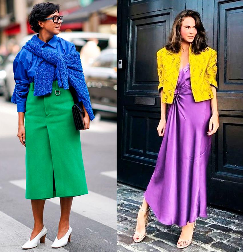 - Pour créer des ensembles plus harmonieux en termes de couleur, je recommande de combiner des tons chauds avec des tons chauds, et des tons froids avec des tons froids. Si vous décidez de combiner une teinte chaude et froide, laissez-les avoir la même saturation (nous combinons brillant avec brillant, en sourdine - avec en sourdine)