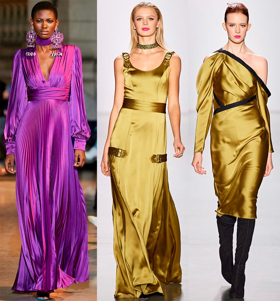Christian sirianoUn éclat incroyable et unique à l'arc du Nouvel An sera présenté par une robe en satin, qui est pertinente en longueur mini, avec des manches longues, des draperies et des bretelles. La version la plus élégante d'une robe en satin est peut-être un modèle de style lingerie ou une robe nuisette, faite de fines bretelles et complétée par de la dentelle ou des plumes.